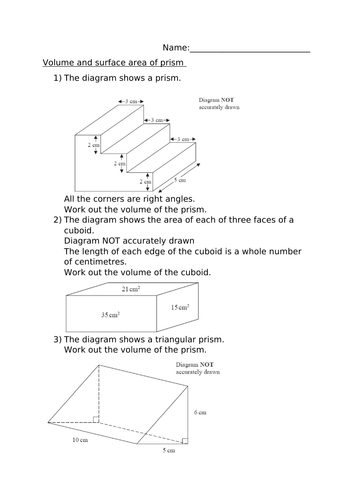 volume of mixed prisms worksheets - volume of a prism worksheets Volume Of A Prism Go Teach Maths Handcrafted Resources For Maths Teachers. Source: . This surface area and volume worksheet will produce problems for calculating volume for prisms, pyramids, cylinders, and cones. Use the concept in activity 2 to find a formula that gives the volume of any prism.
